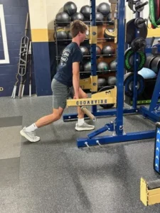 Image: Starting Cluster Sets early in the rehabilitation process. Here we have an athlete who is 6 days post-op starting with light resistance. The key here is get involved with your medical staff early and incorporate safety while allowing them to safety integrate back into the team setting.